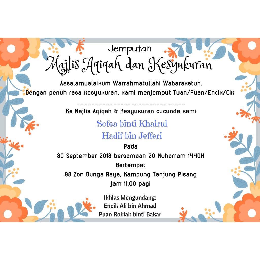 Customize this wedding logo template. Ni cara mc design kad jemputan kenduri aqiqah anak mc baru ni. The collection that consisting of chosen picture and the best amongst others. Download template kad jemputan majlis kesyukuran seven things that. Kad jemputan aqiqah bahasa inggeris. Ia akan memberikan kesan elegant dan classy.